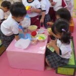 子どもたちは、コロナウイルスは人に悪いことをするウイルスだけど、「手洗いや消毒をすれば大丈夫!」「注射もあるんだよ。」とお話をよく聞いていました。