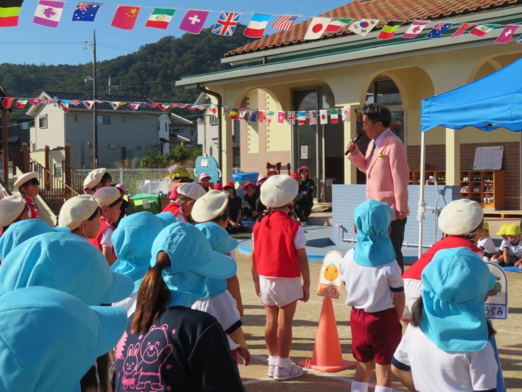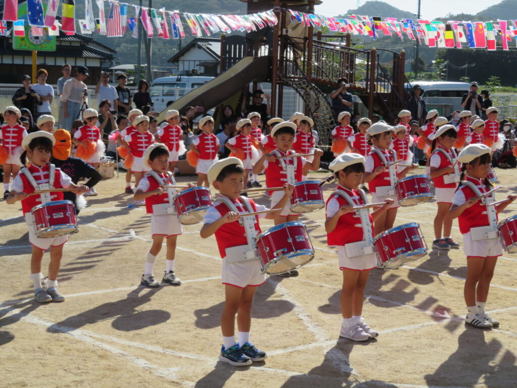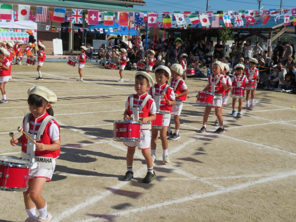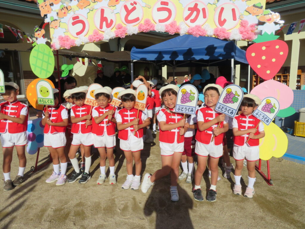 ファンファーレが流れ、めろん組を先頭に、みかん組、ぶどう組が入場です。