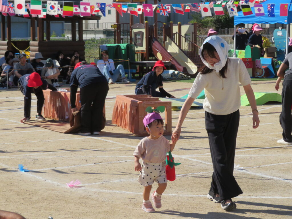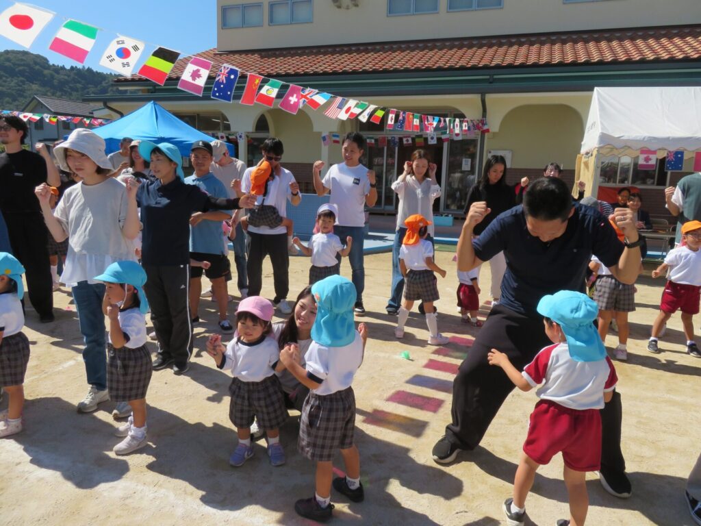 親子遊戯は、『地球をどんどん』です。今年もみんなで「オーレッ!」と声もそろって楽しく踊りました😊💕