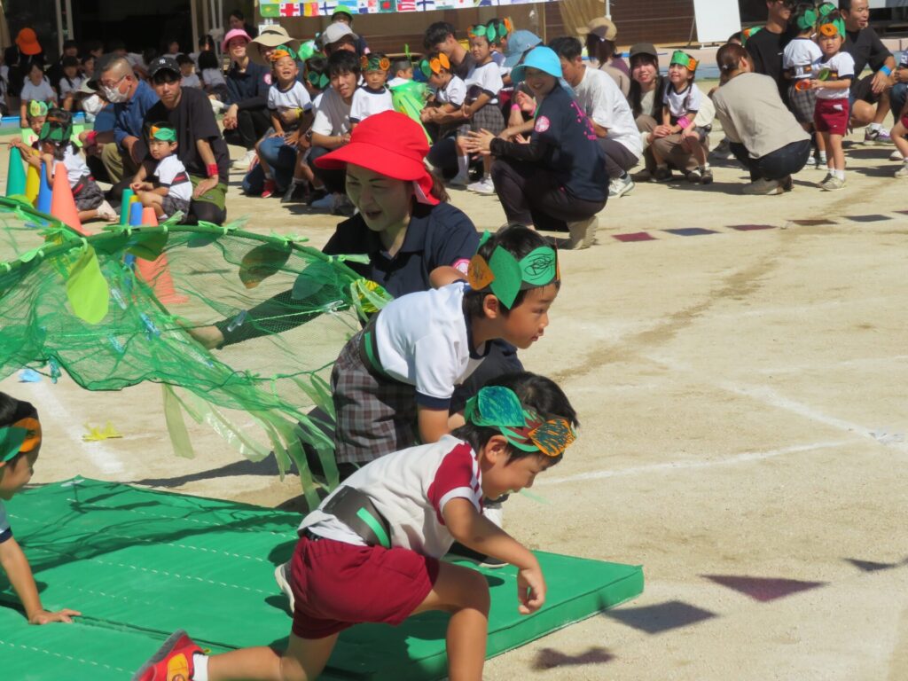 みかん組の競技は、『すすめ!ザリガニランドの大冒険』です。ザリガニになって冒険に出発です!