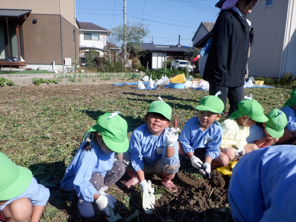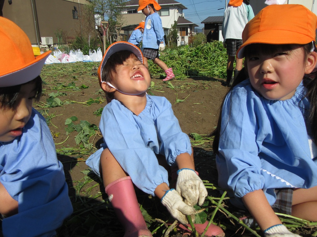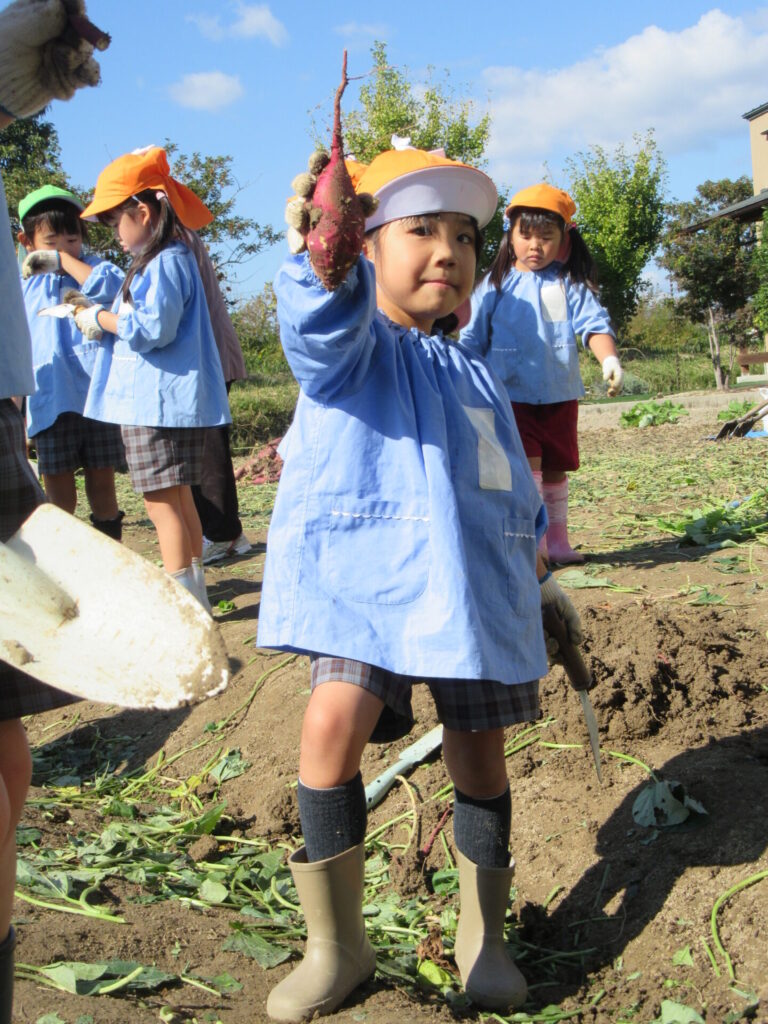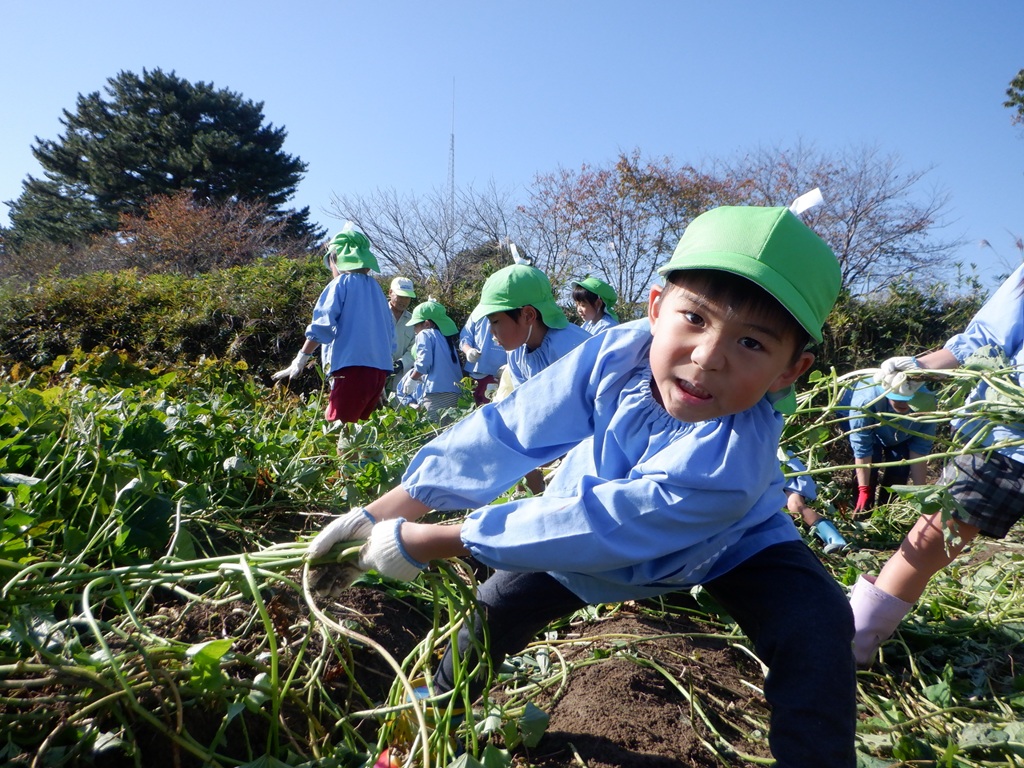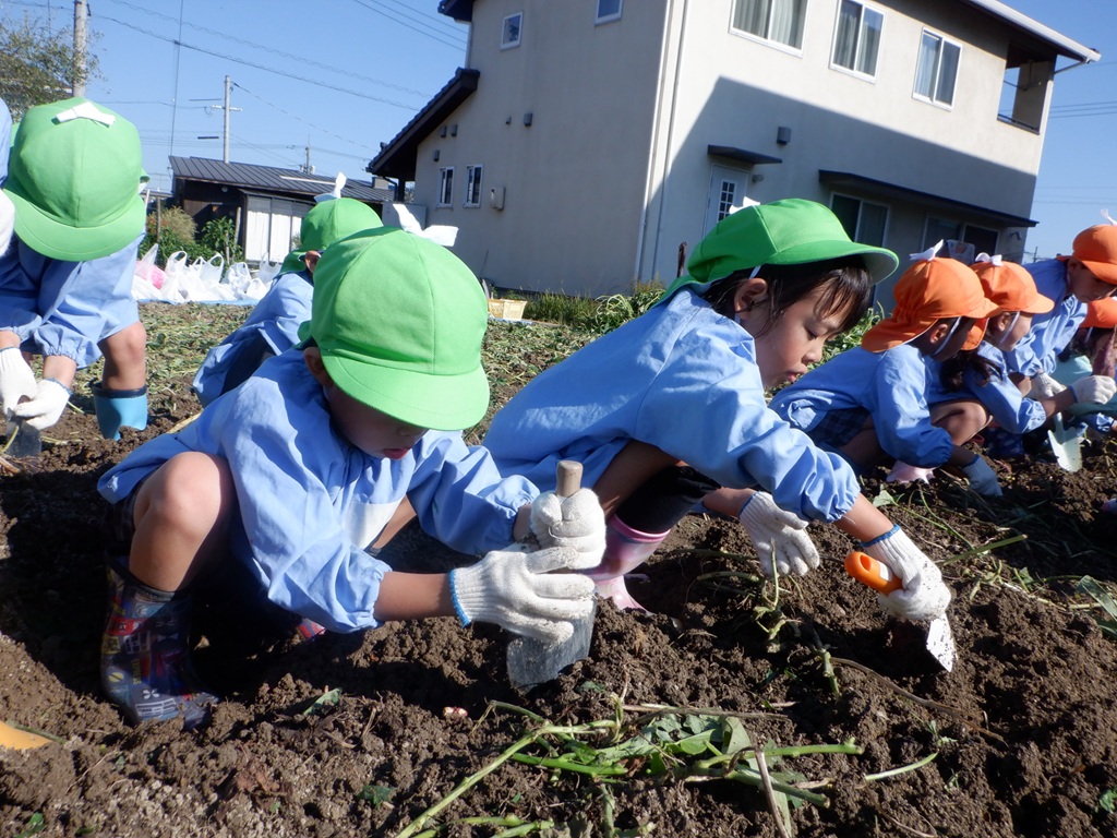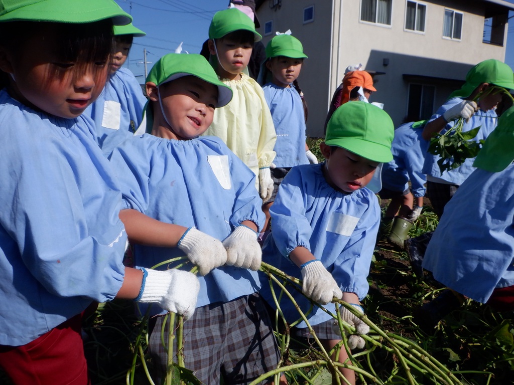 「よいしょ」と勢いよく引っ張ると、大きなお芋に小さなお芋、たくさんくっついているお芋など、いろいろなお芋がかおをのぞかせました。子どもたちは面白さを感じたり、喜んだりして手を休めることなく掘り続けていきます。😊