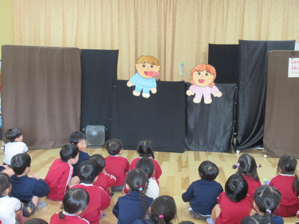 今日は、こども園でおなじみのけんちゃんとゆうちゃんが登場する、メディアコントロールについてのお話です😊こども園では初めてのお話です。
