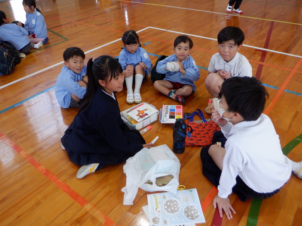初めは緊張した様子の子どもたちでしたが、お兄さんお姉さんが優しく声を掛けてくれたのですぐに仲良くなれました。力を合わせて一つのボールを完成させたグループからは「やったー!」と喜びの声が聞こえてきました。今の5年生は、めろん組の子どもたちが小学校へ入学した時に6年生としてサポートしてくれます。頼りになるお兄さんお姉さんと楽しい時間を過ごすことができたので「楽しかった~♪」と充実した気持ちで子ども園に帰ることができました。貴重な体験と楽しい時間をありがとうございました。