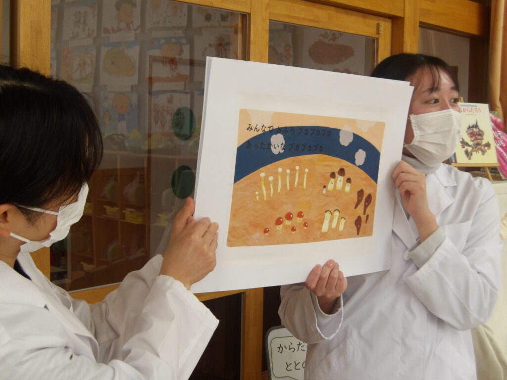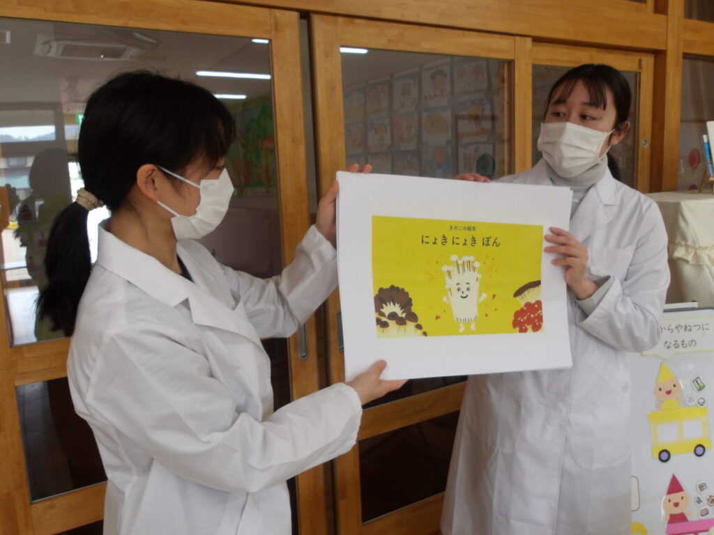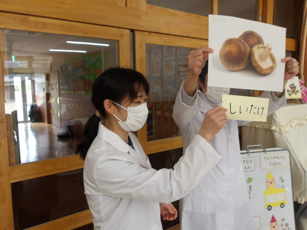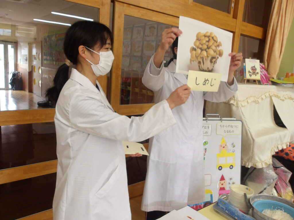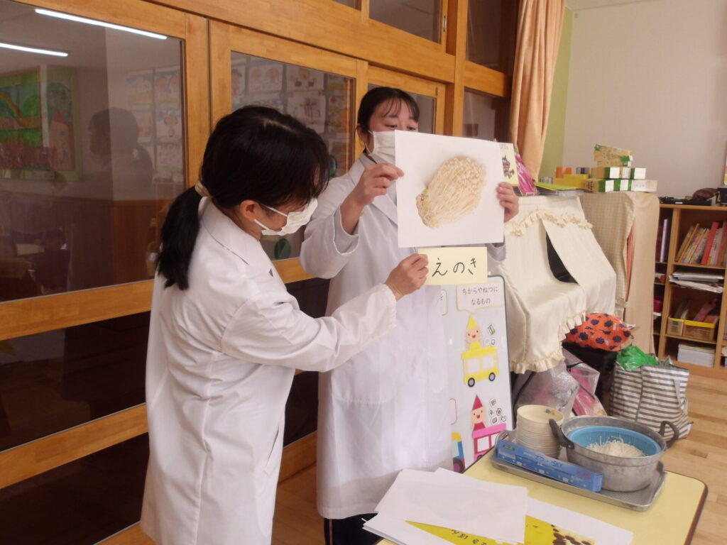 きのこの名前を覚えてもらうために、きのこについてめろん組さんにお話をしました!