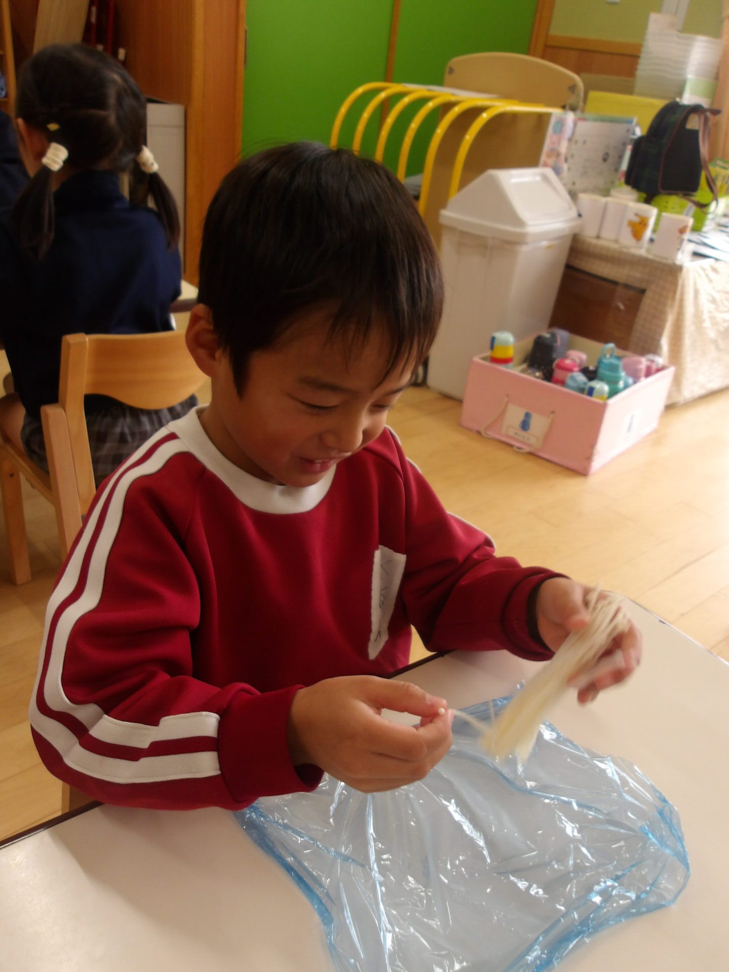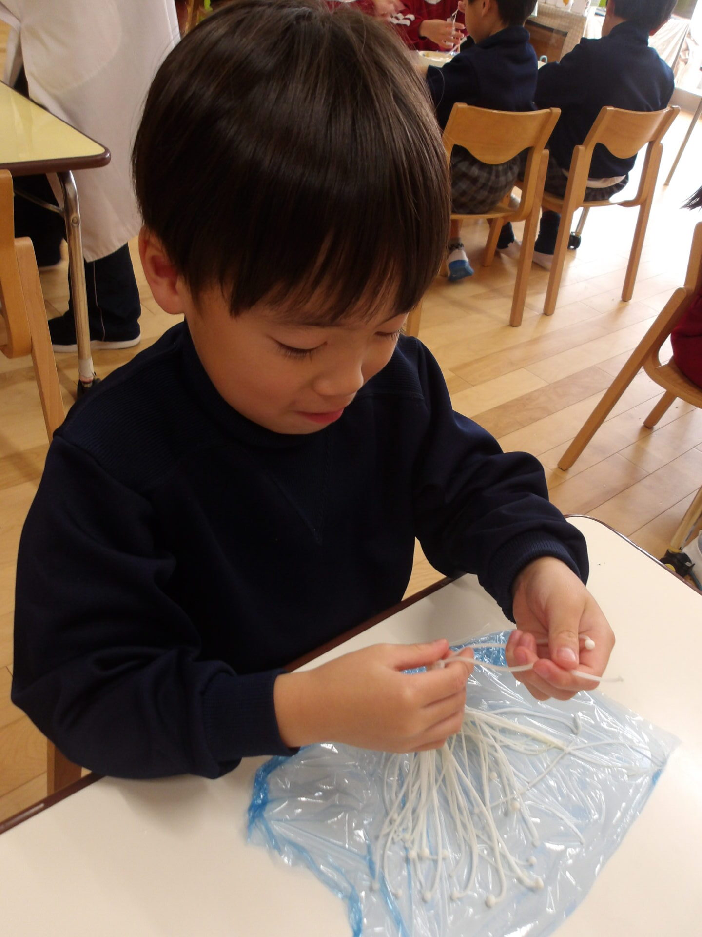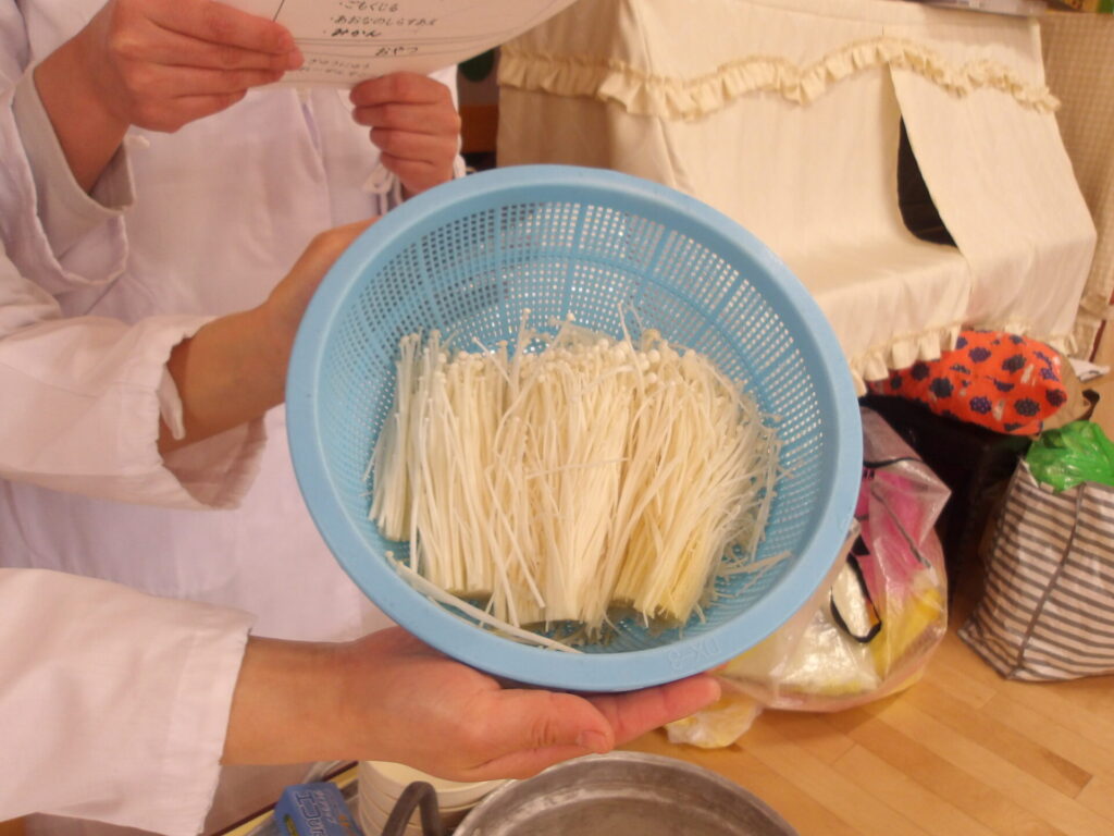 グループで協力しながら、みんな上手にえのきを割くことができました!