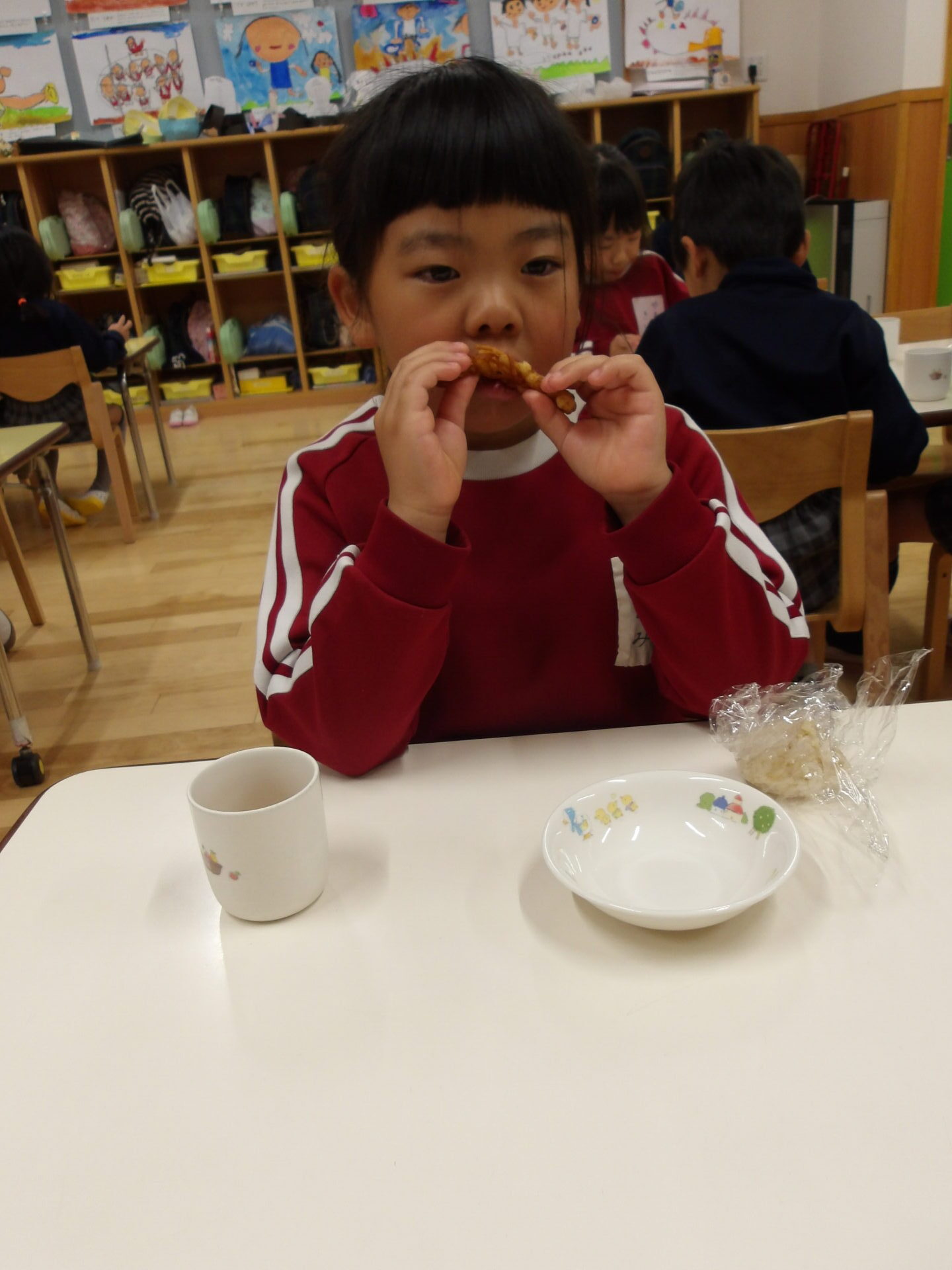 実際に食べている食材に触れてもらうことで、食への関心を深めることができました。より食事を楽しんでもらえるよう、こども園ではこれからもたくさんの食材に触れられるような献立作りをしていきたいと思います。