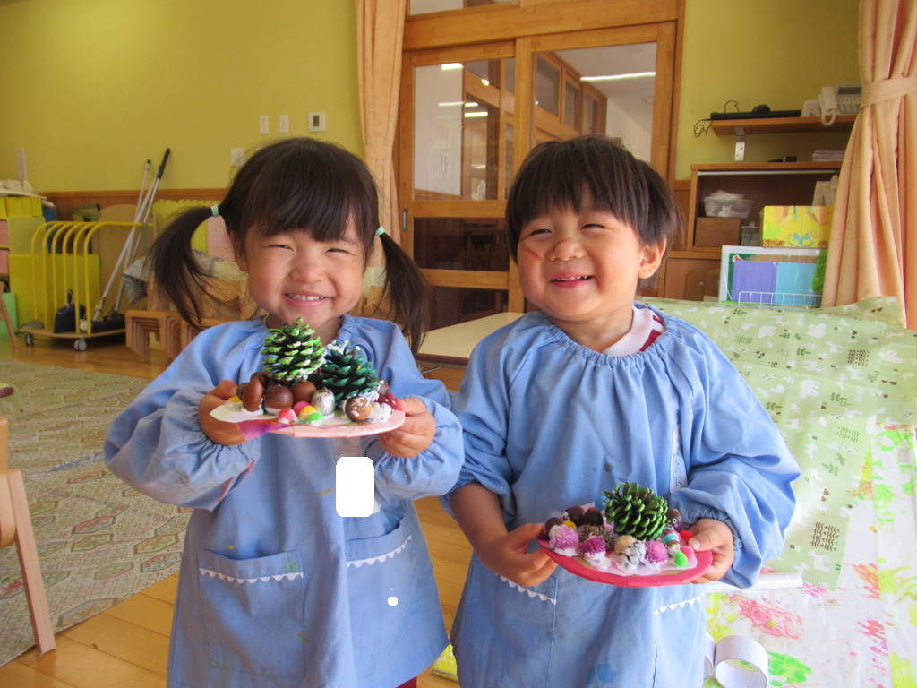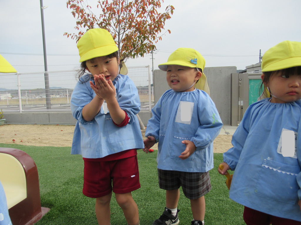今年の秋は、製作をしたり、砂場で遊んだり、クッキングをしたりといろいろな形で秋を楽しむことができました。遊びの中で友達とたくさん会話をしたり、自分の思いを先生や友達に伝えたり、自分の遊び方を見つけたりと一人一人がいろいろな関わりをしながら楽しんでいる姿に成長を感じています。秋を満喫したたくさんの笑顔💕これからもたくさん自然に触れて遊んでいきたいと思います。