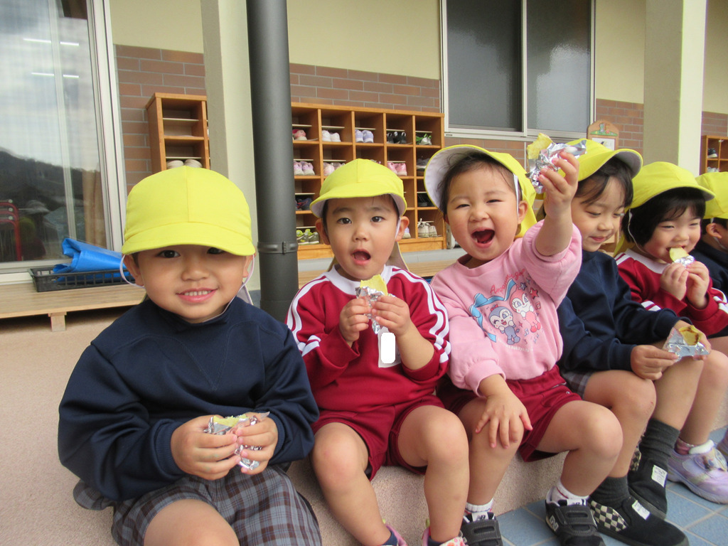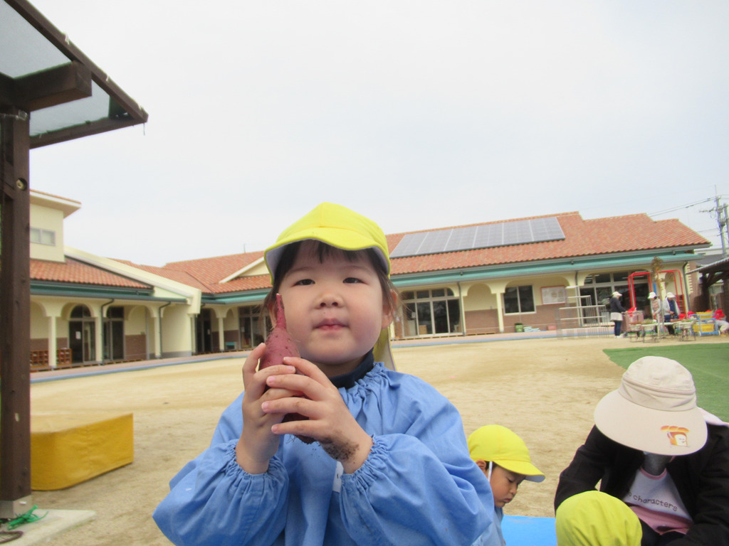 めろん組さんが育ててくれたお芋を掘って焼いて食べました。お芋の匂いがしてくると「早くたべたーい。」と楽しみにしていました。食べると甘くてとてもおいしかったです。めろん組さん、食育の経験をさせてもらってありがとうございました。