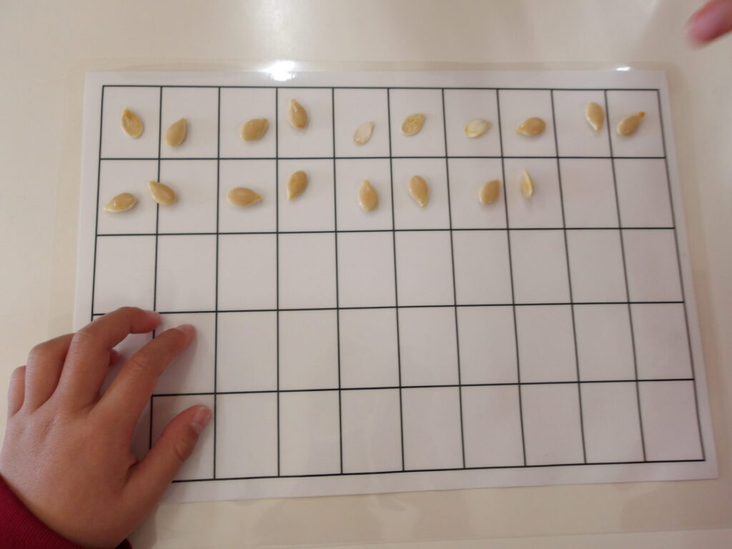 みんなで協力して数えた種は「169個」でした!みんな種の多さと、ぬるぬるとした感触に驚いていました。