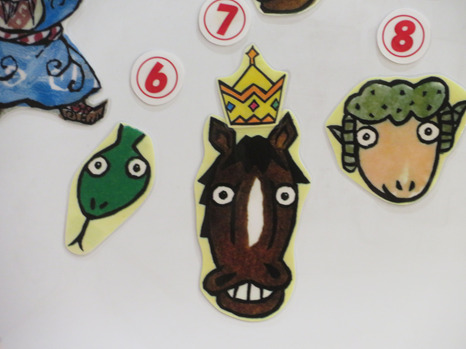 サルに続き、10番に鶏、そして、11番に犬と12番にイノシシが駆け込んできて、12の年の大将が決まりました。「今年の大将は、巳(ヘビ)だったけど、来年の大将は、誰か知っているかな?」と聞くと、「馬」と教えてくれました。