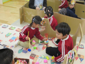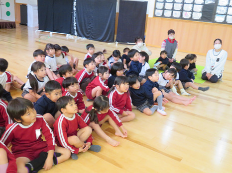 十二支のお話の後には、元旦に年神様を迎え、一年の豊作と家族の安全を祈願する日本の伝統的なお正月の料理であるおせち料理についても話しました。子どもたちも、「食べたことがある。」と教えてくれるなか、食材にはそれぞれに意味があることも知らせると、真剣に耳を傾けて聞いてくれていました。