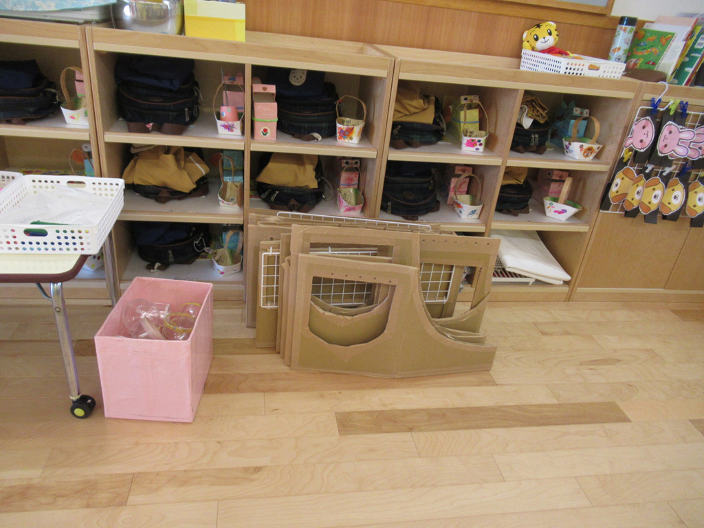 子どもたちの声をひろってみると、色々な思いを持って遊んでいる様子が伝わってきました。身近な素材や段ボールが子どもたちにとってはいろいろのものに見立てられています。一通りの遊び方ではなく、私たちはその発想に驚かされます。これからも子どもたちとの会話を楽しみながらごっこ遊びを楽しんでいきたいと思います。