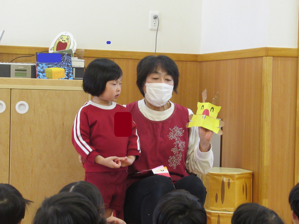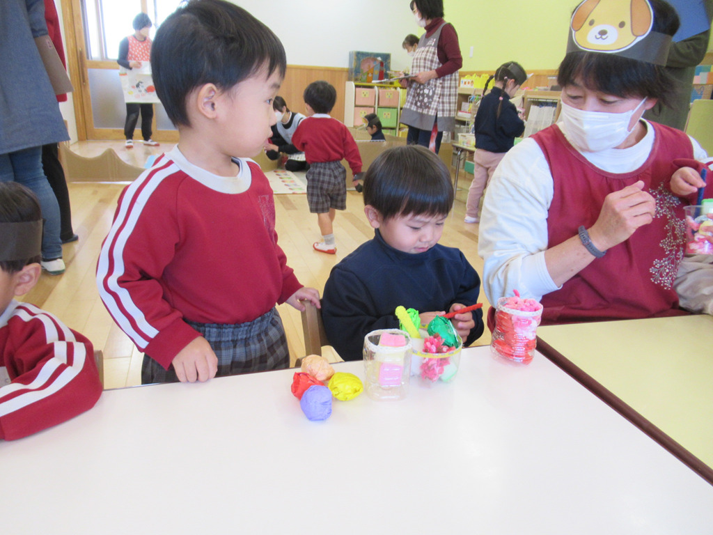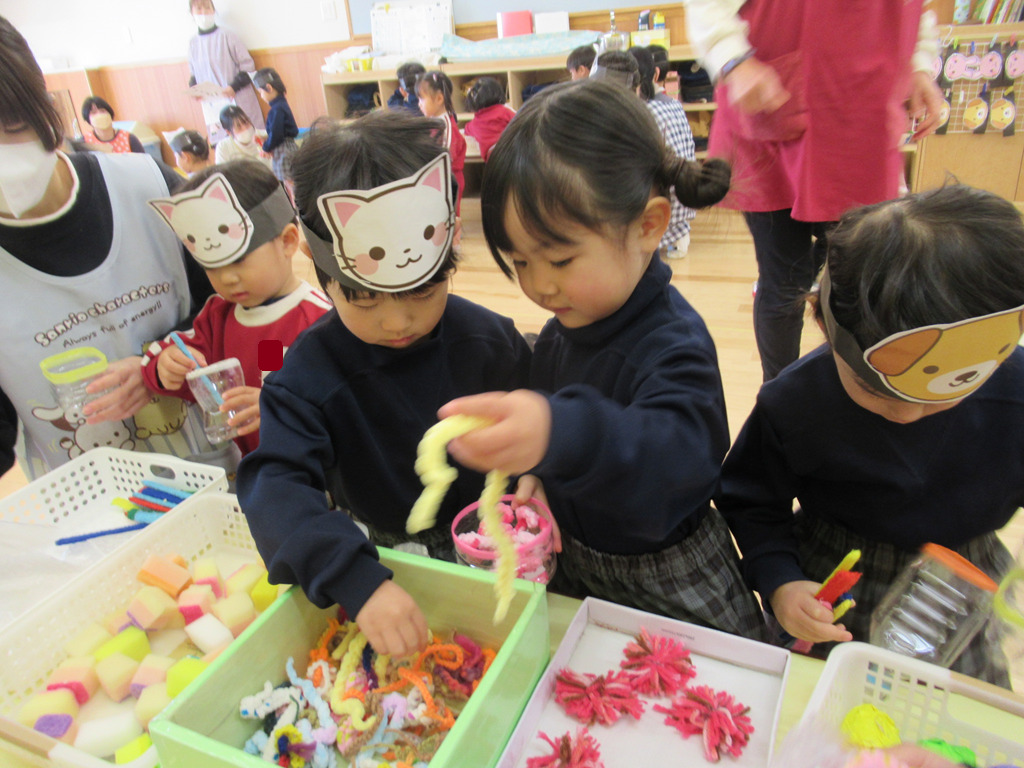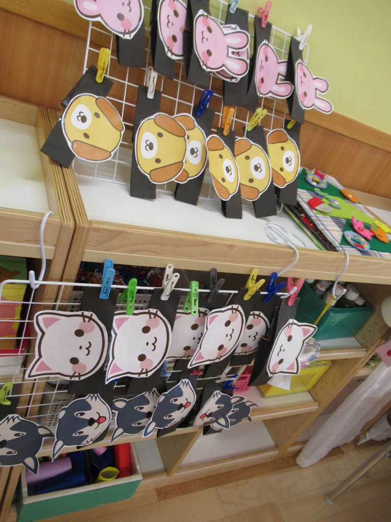 みんな指先が器用になって洗濯ばさみで留まっているお面を付けたり外したりしていました。