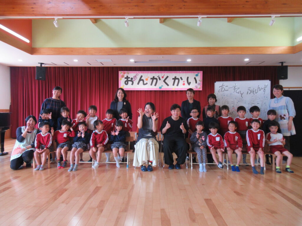 お忙しいスケジュールの中、やまて認定こども園に来てくださり、素敵なアコースティックライブを見ることができ、心が元気になりました。きれいな音楽を聴くことで、心が癒され、元気をもらえたように思います。そして、思い出の曲”海辺のdiary”をまじかで聴くことができたことが何よりうれしく思いました。子どもたちの心の中にも、きっと素敵な思い出になったのではないかと思います。音楽制作やコンサート活動、と日々お忙しく活躍されているよっしーともんちゃん。また、やまて認定こども園に遊びに来てください。岡山から、お二人の活躍を応援しています。また、会える日を楽しみにしています。素敵なライブ💕ありがとうございました。
