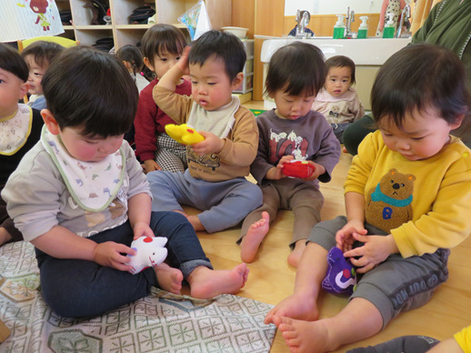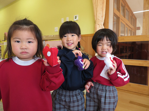 可愛らしいプレゼントに、子どもたちは目を輝かせて大喜びでした。