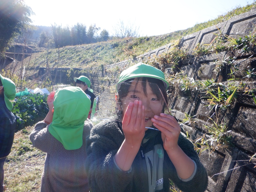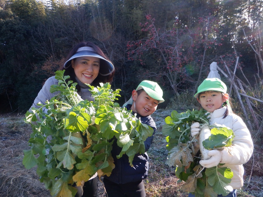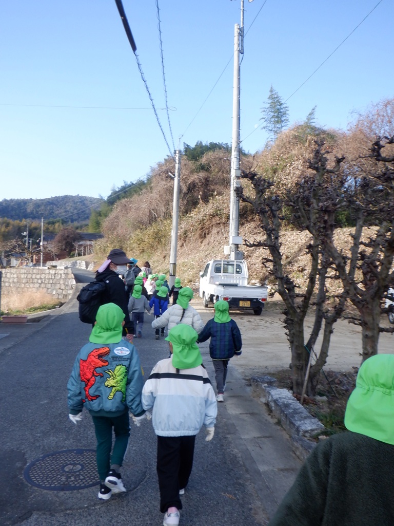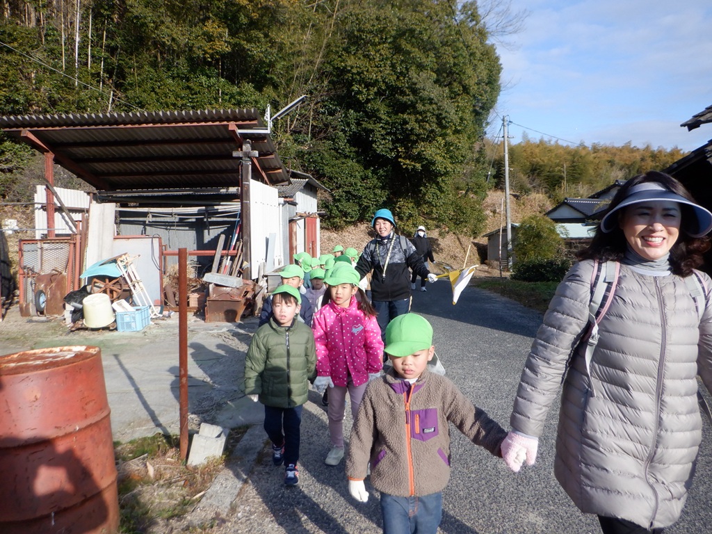 楽しかった大根掘りから帰る時にも交通安全に気を付けながら帰りました。みんなが持ち帰った大根はどんな料理に変身するのかな?こども園の給食にも使わせていただいて、こども園の子どもたちみんなで旬の大根を味わいたいと思います。友野さん今年も立派な大根をありがとうございました。