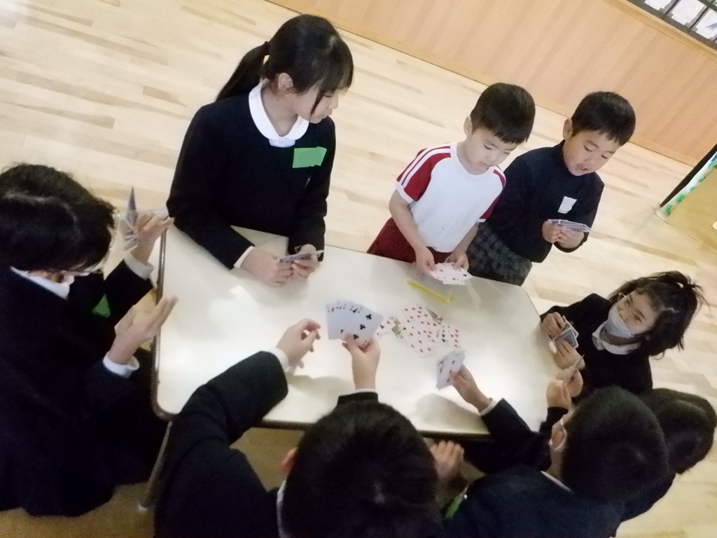 トランプのグループはババ抜きと神経衰弱をしました。ババ抜きの最後は5年生とめろん組との一騎打ちの真剣勝負です✨相手にババの位置を悟られないように、お姉さんが後ろからさり気なくサポートしてくれました。先に上がった人達に見守られる中、カードの枚数はどんどん減っていき…さて軍配はどちらに上がったのでしょうか⁉大盛り上がりでした♫