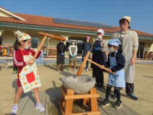 めろん組の子どもたちが小学校に入学した時、6年生としてお世話をしてくれるお兄さんお姉さんたちが、山手認定こども園に遊びに来てくれました。お兄さんお姉さんと遊ぶのを、とても楽しみにしていた子どもたち。今日は普段からこども園で楽しんでいるお正月遊びを一緒にしました。