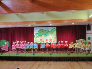 まずは🍓いちご大福グループの子どもたちからです。お母さんと一緒にお返事をして登場しました。