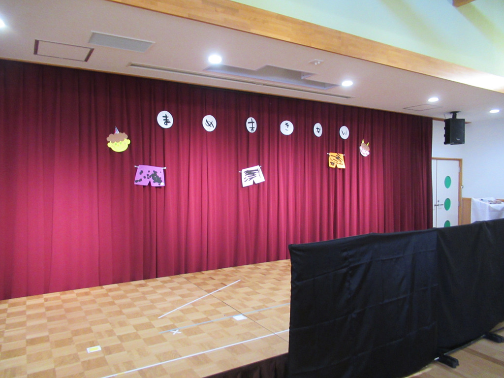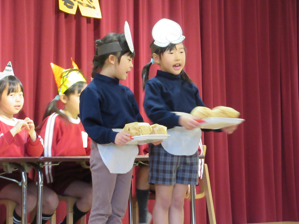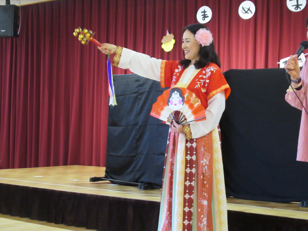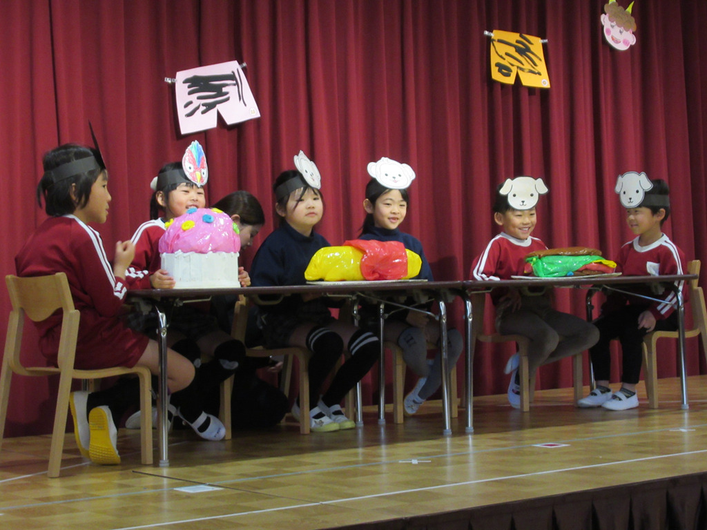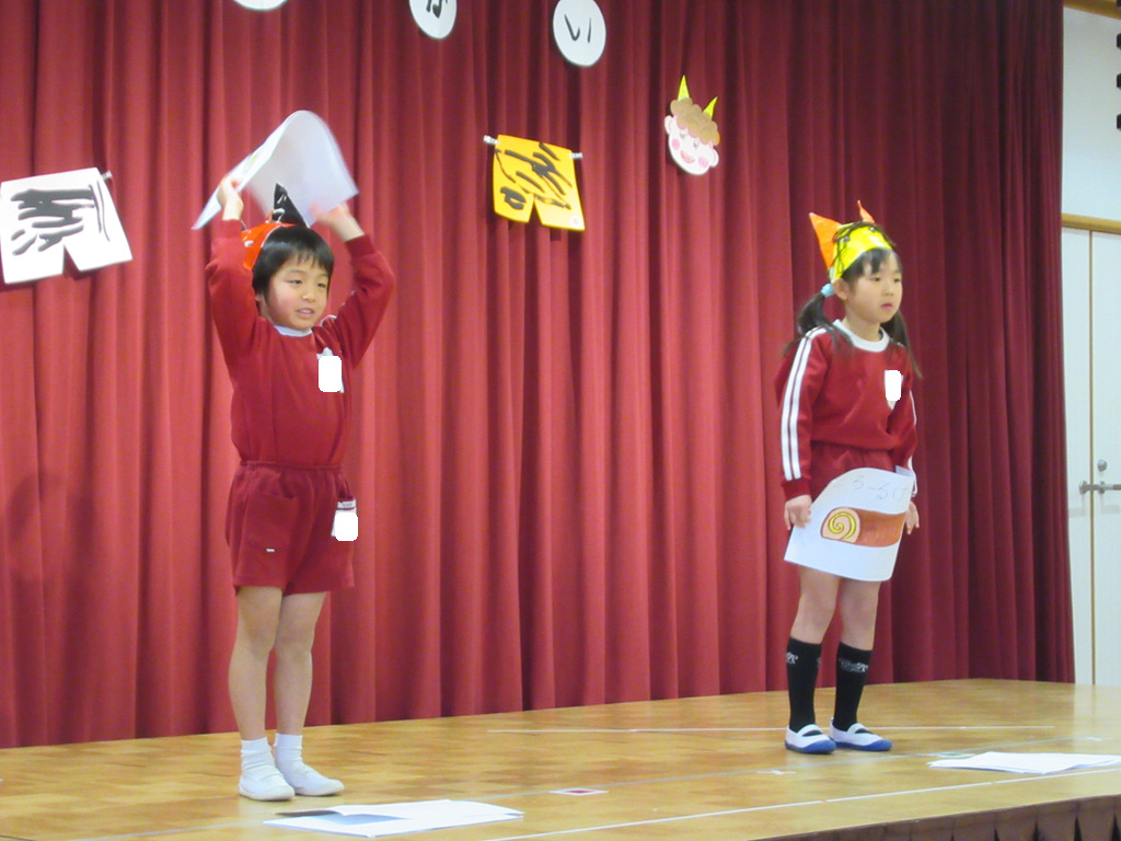 プログラム4番。『たべものたろう』です。たべものたろうのところに郵便屋さんが鬼ヶ島の鬼さんのお手紙を持ってきました。