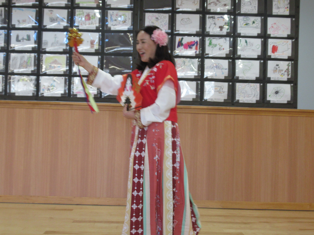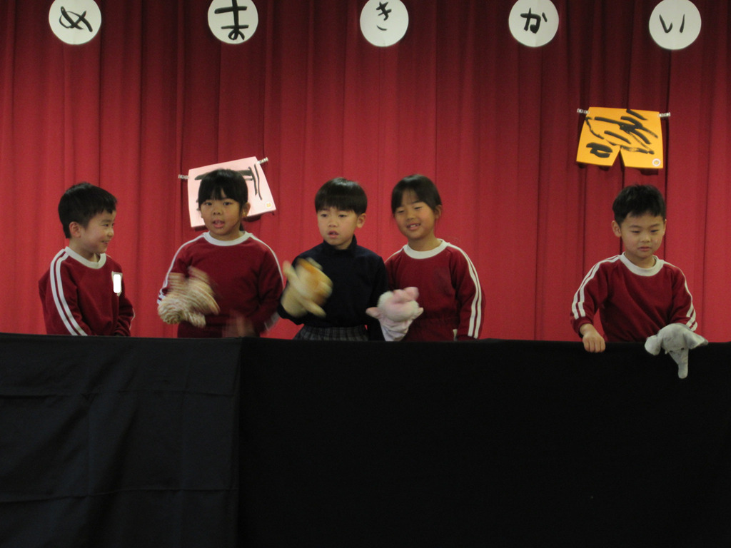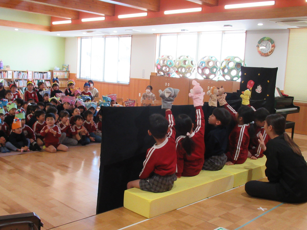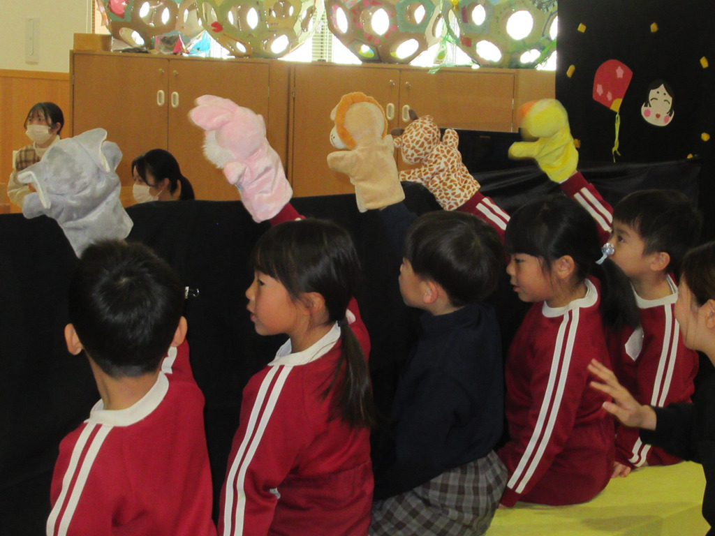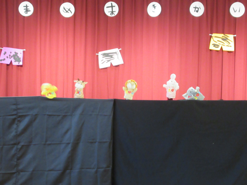 プログラム1番『パペットショー』です。『おもちゃのチャチャチャ』の曲に合わせて動物のパペットでショーを楽しませてくれました♪会場からは、たくさんの手拍子が聞こえてきました😁