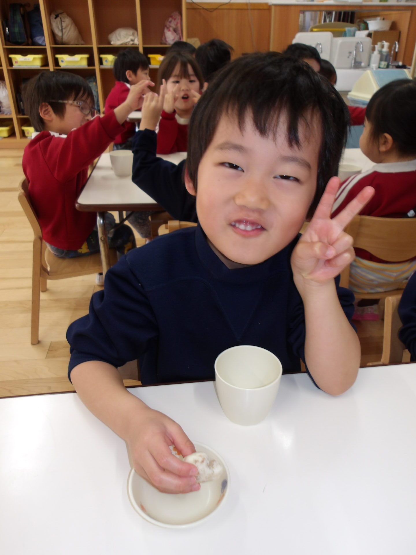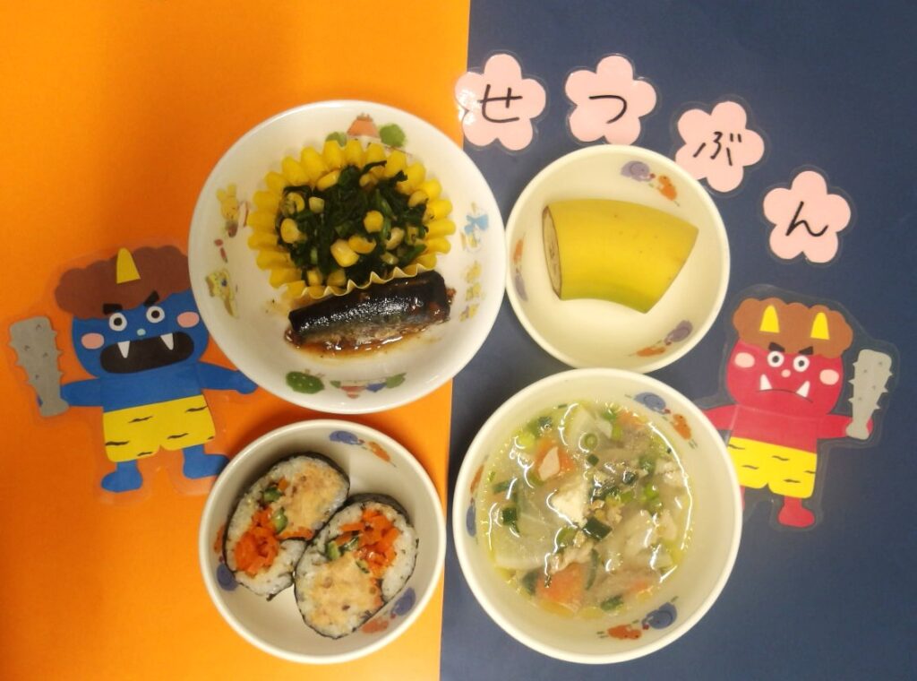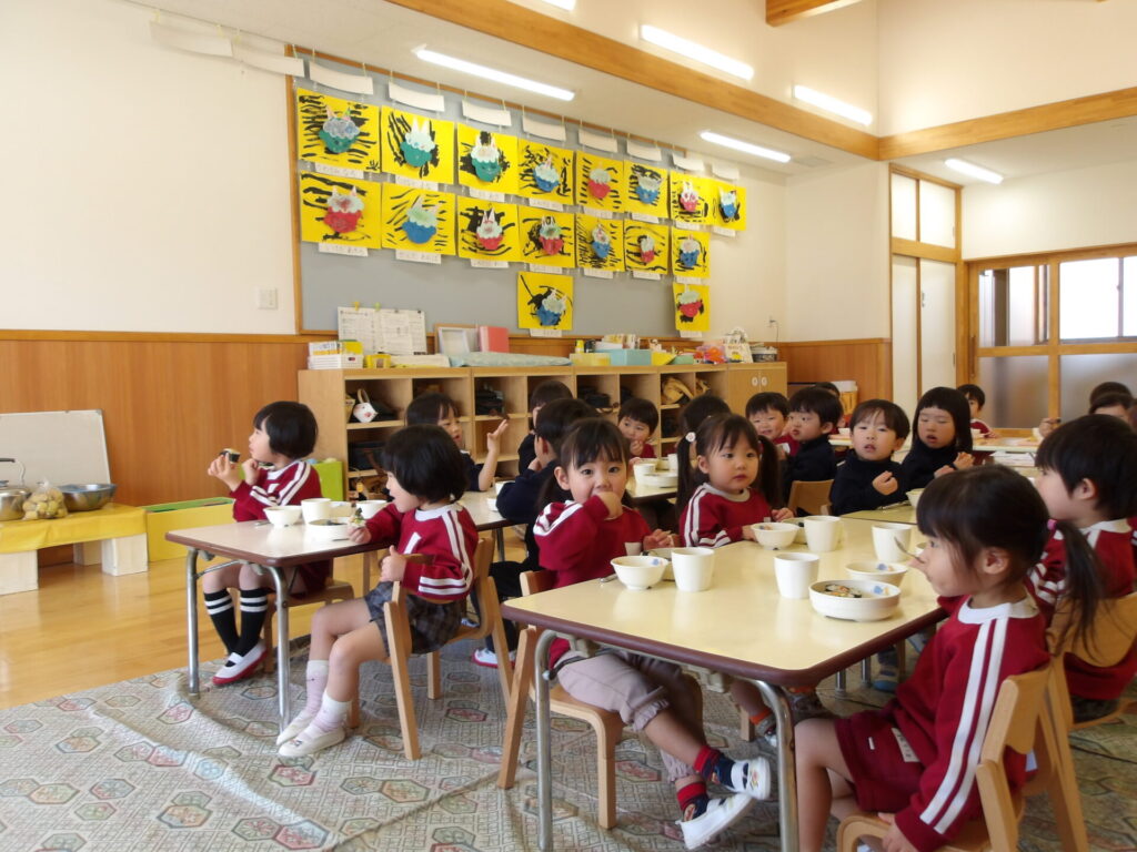 子どもたちはしっかりと福を願って食べることができていました。