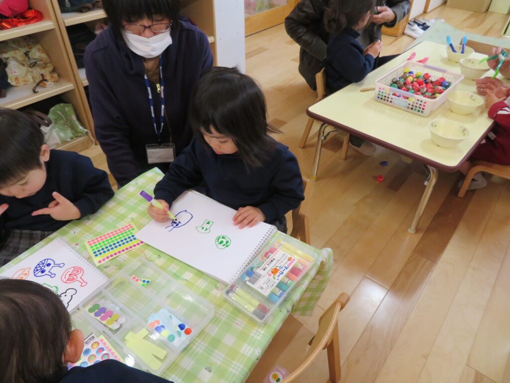 お人形で遊んだり、マーカーでお絵描きをしたりしました。