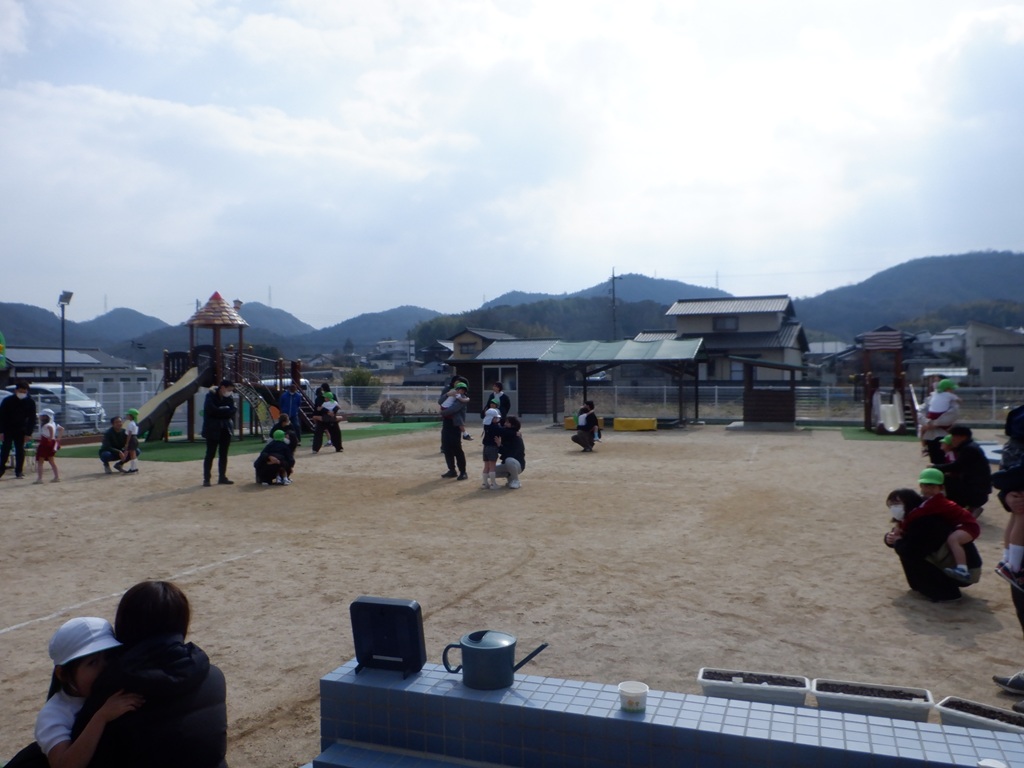 今日はこども園最後の参観日でしたが、大きく成長した子どもたちを見て頂けたと思います。「お家の人にかっこいいところを見てもらう!」という子どもたちの顔はたくましく輝いて見えました。お家の人に沢山褒められたことで、さらに自信をつけた子どもたち。小学校へ向けて大きく羽ばたけるように、一人ひとりを大切に、友達との絆を深めながら、残りの園生活を大切に過ごしたいと思います。