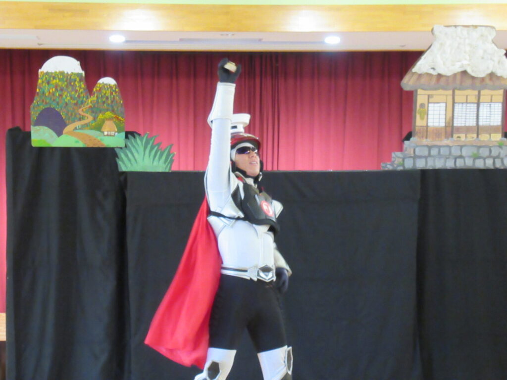 ここで、住警器マンの登場です。「みんなの家には、住警器はあるかな?」「さて、どこにあるのがいいかな?」と子どもたちに聞くと、「リビング」「台所」「寝るとこ」と次々に声があがります。皆さんはわかりますか?