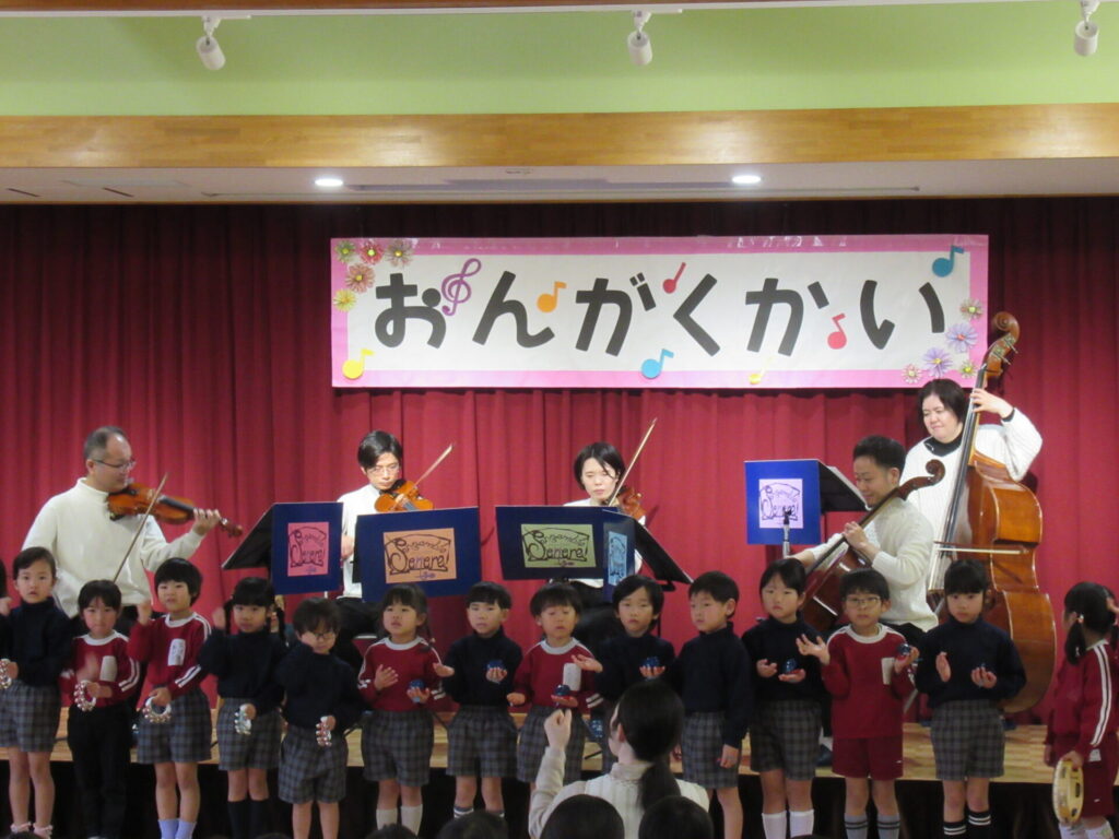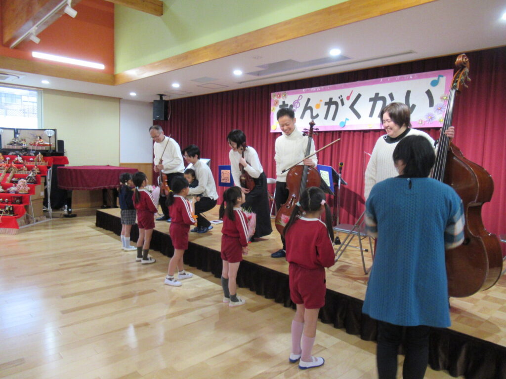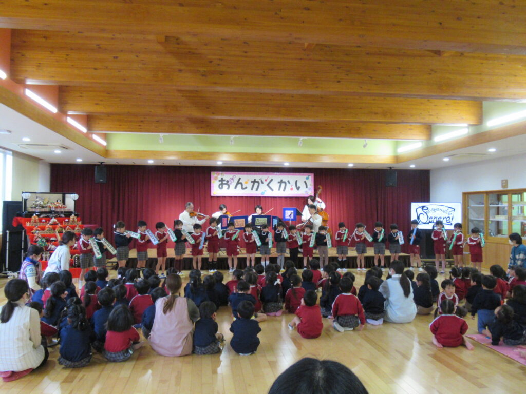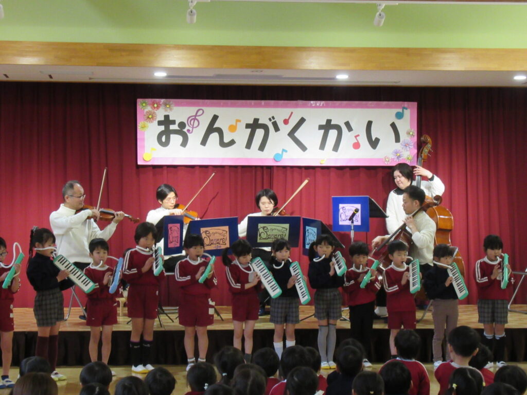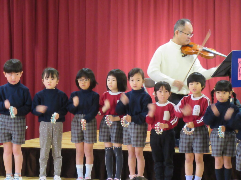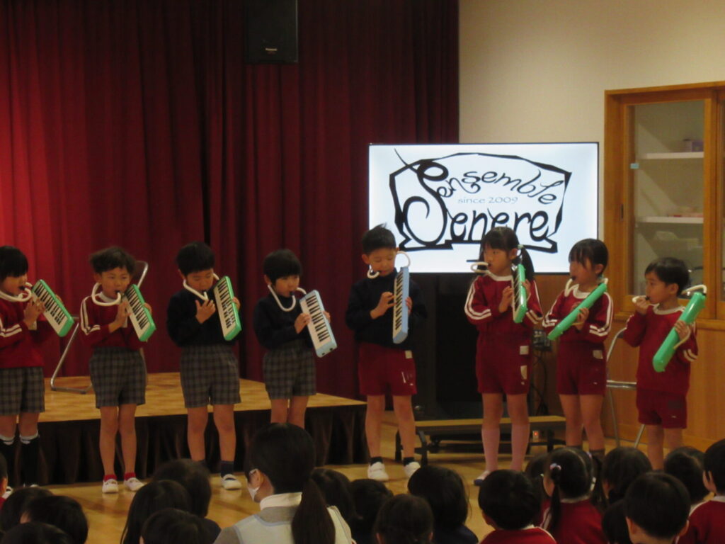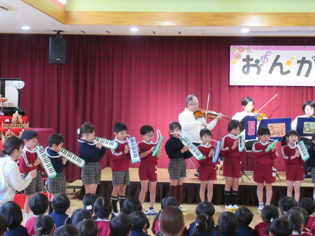 弦楽楽器の音色とめろん組の鍵盤ハーモニカの音色が素敵に重なり、遊戯室に響き渡りました🎵