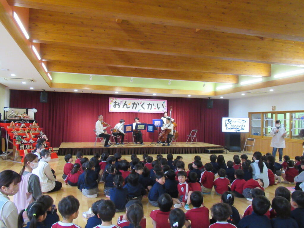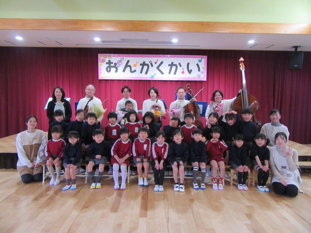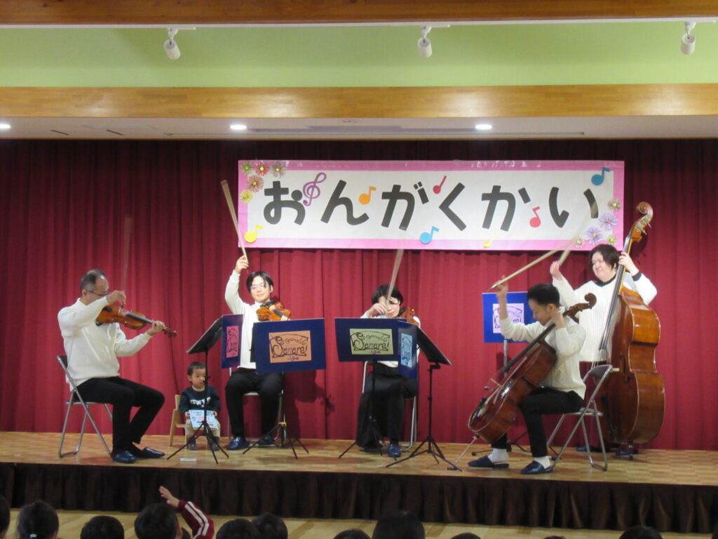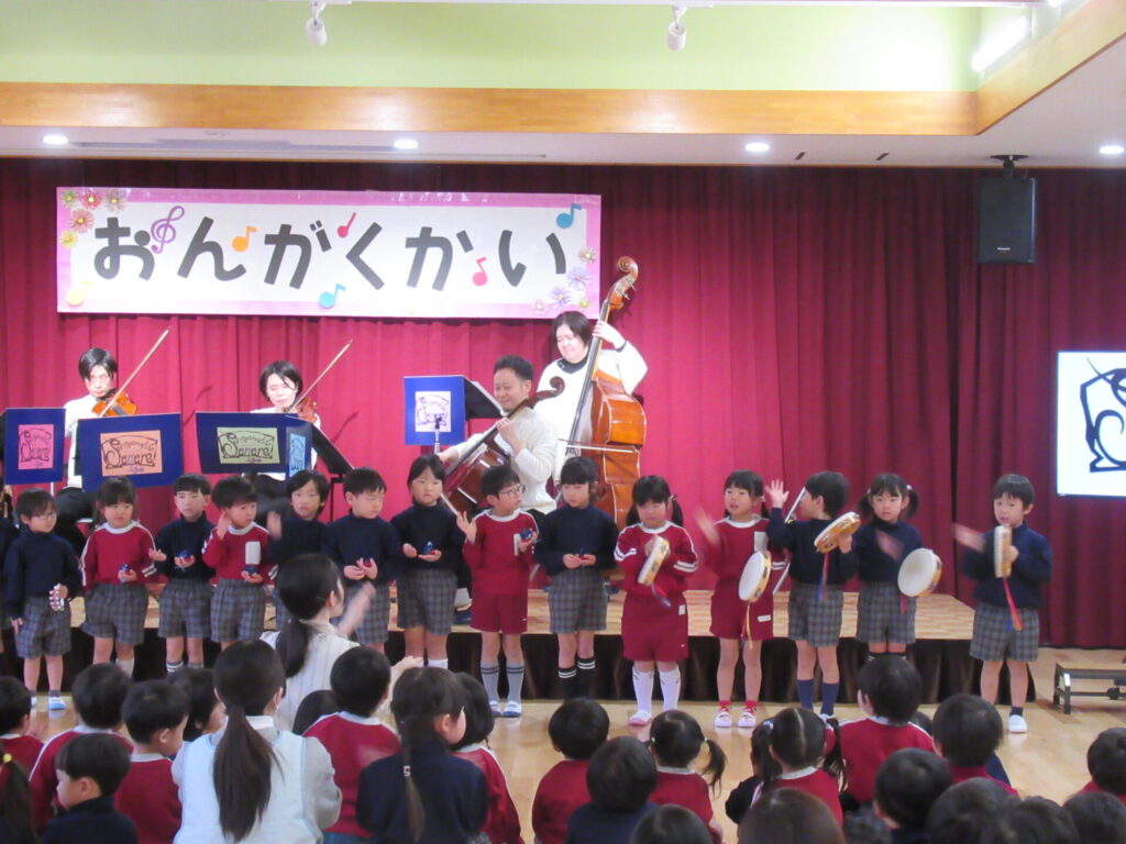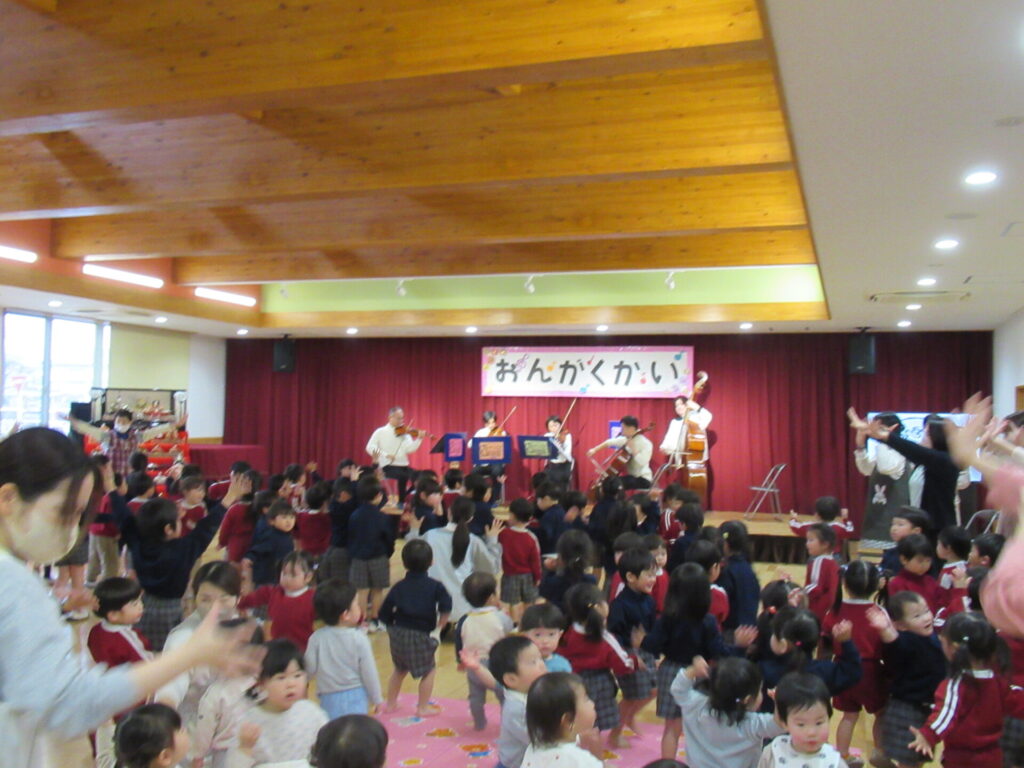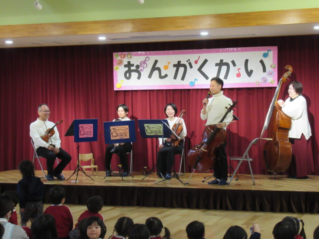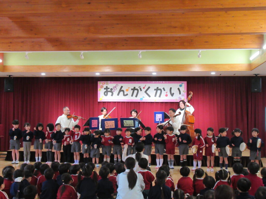 弦楽楽器の音色とめろん組の鍵盤ハーモニカの音色が素敵に重なり、遊戯室に響き渡りました🎵