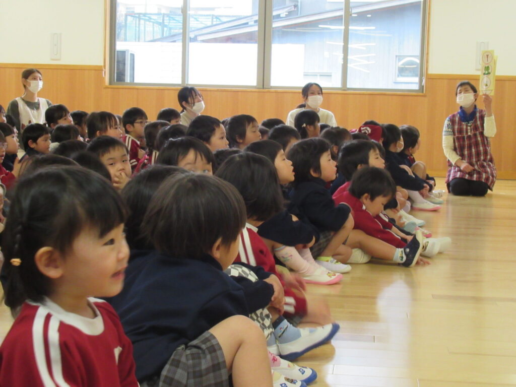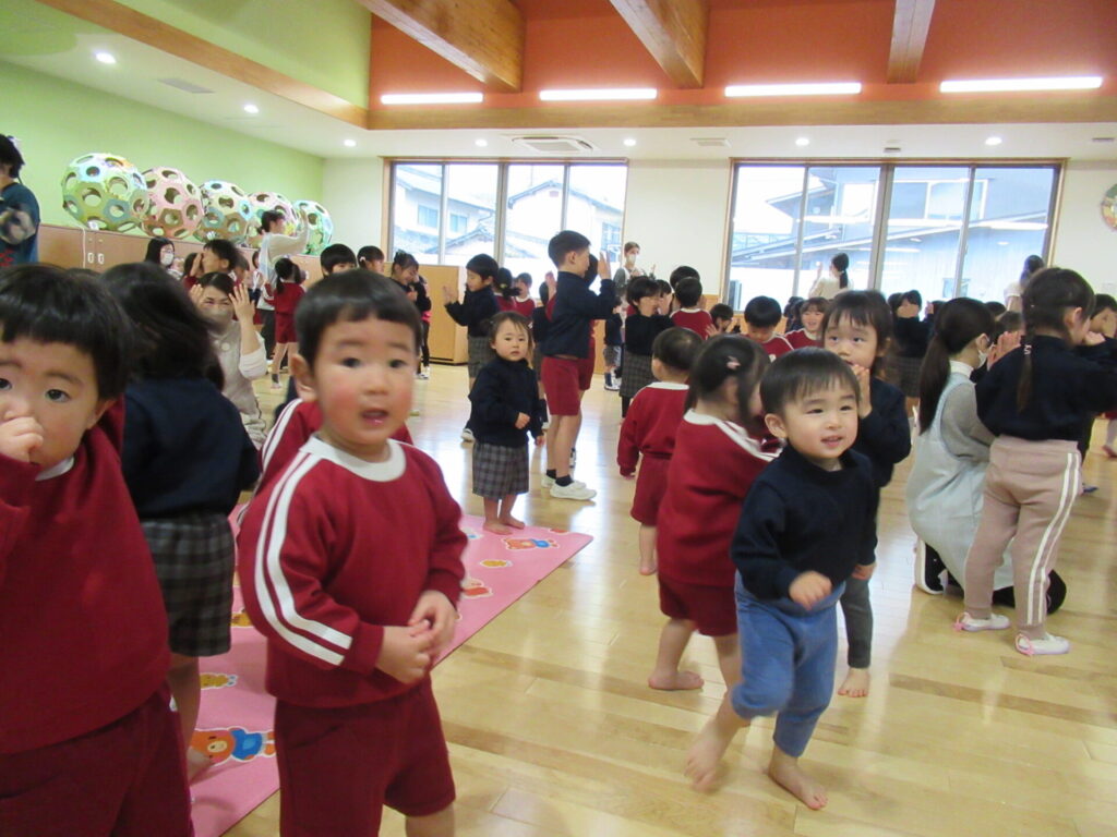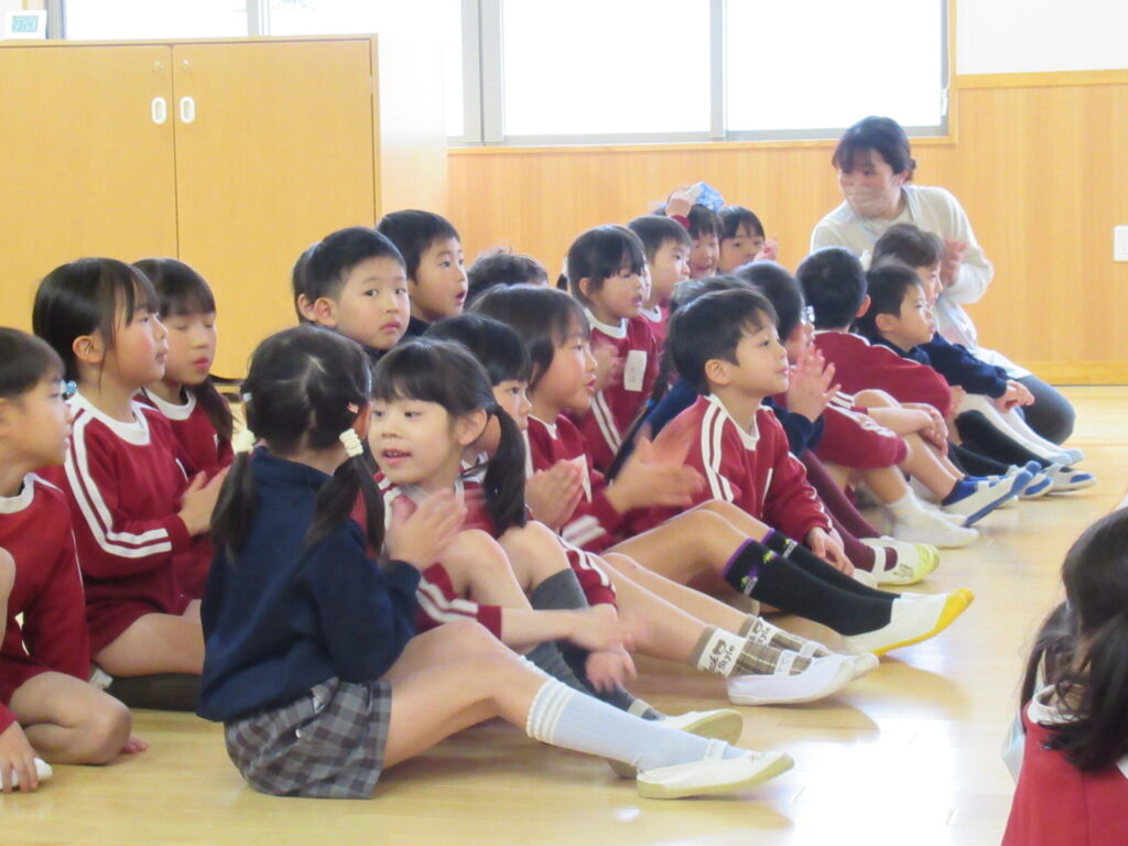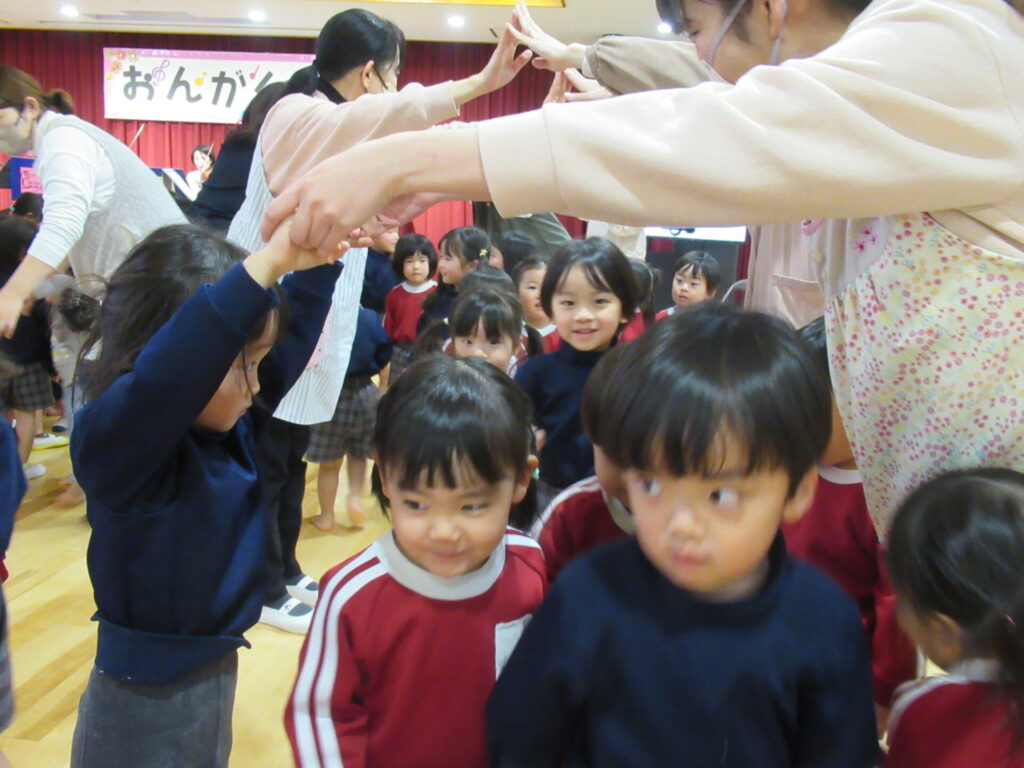 みんなで、ぶどう組が生活発表会で歌った『手のひらを太陽に』を歌いました🎵大きな声で元気よく歌えました。