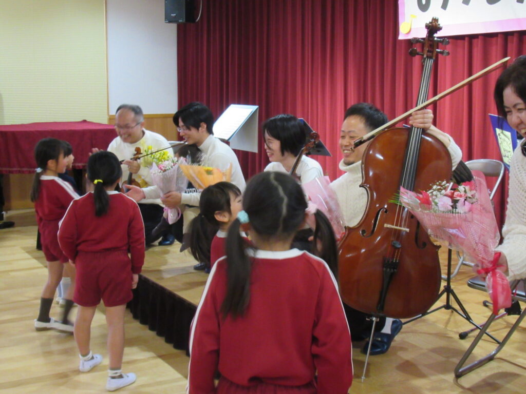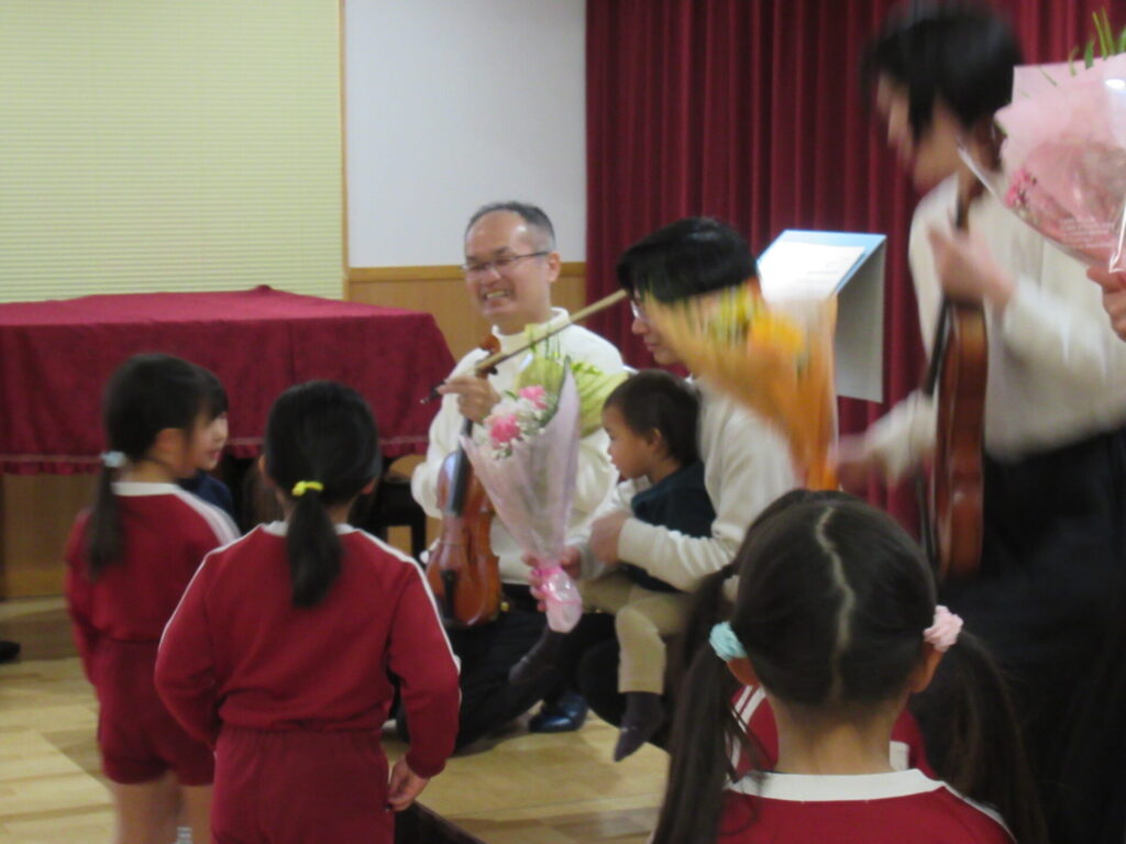 素敵な演奏を聴かせてくれたアンサンブル・ソノーレの皆さんにめろん組の子ども達から花束のプレゼントです💐✨